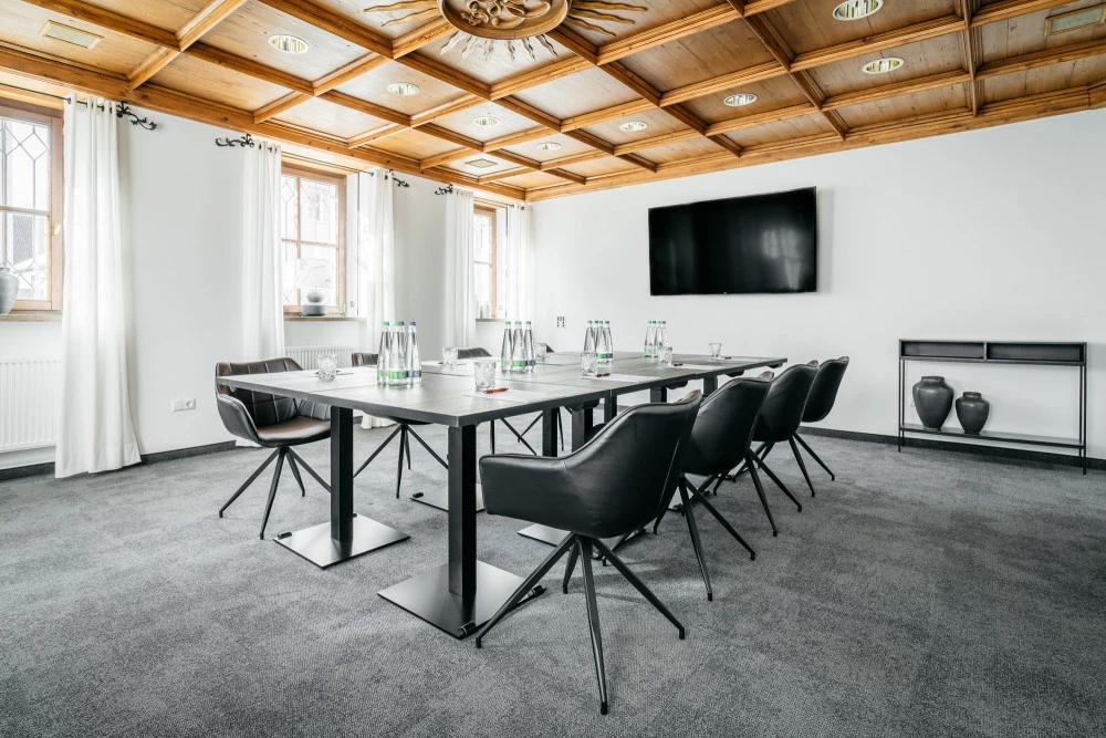 Nutzen Sie unser kostenfreies WLAN sowie die passende Ausstattung für Ihre Meetings, Tagungen und Seminare. Gerne stellen wir Ihnen eine Full-HD-Leinwand oder Flatscreens, Flipcharts, Pinnwände, Whiteboard sowie Licht- und Soundanlagen bereit. Lassen Sie sich nach getaner Arbeit von unserer modern-fränkischen Küche mit einem raffinierten Dinner kulinarisch begeistern.
